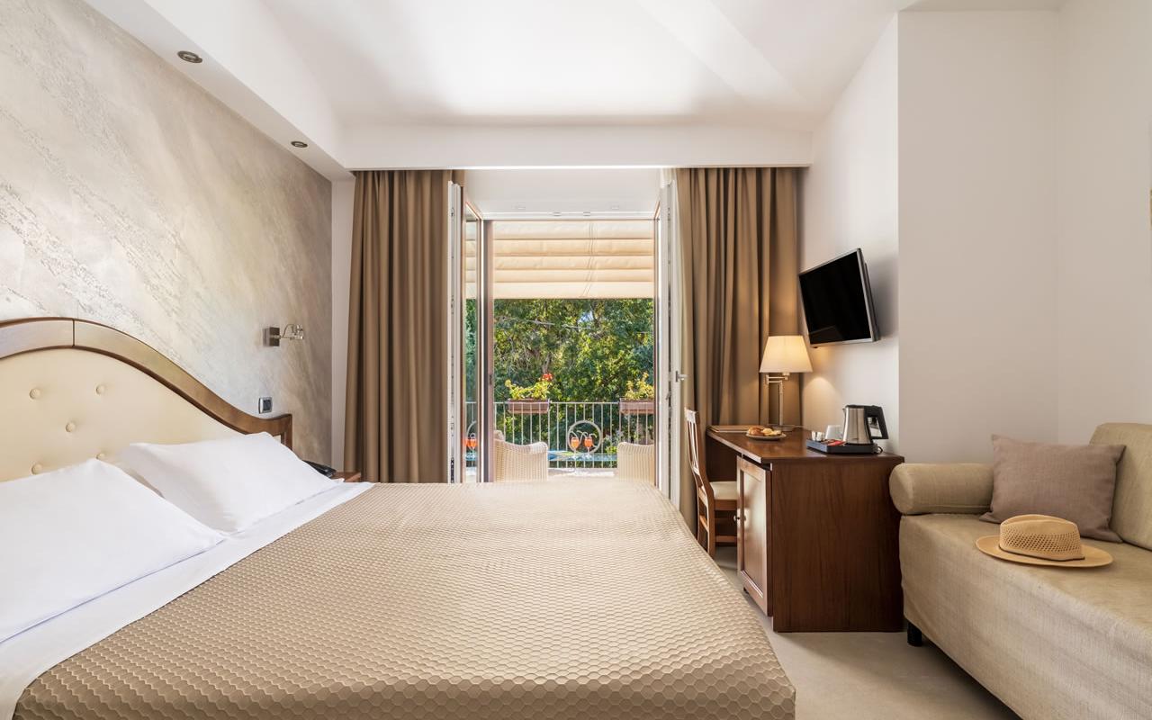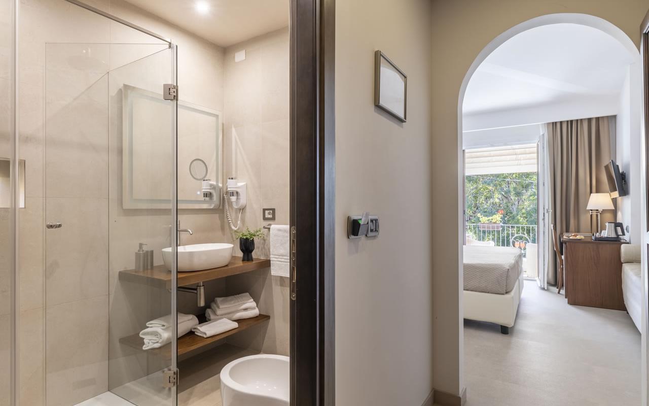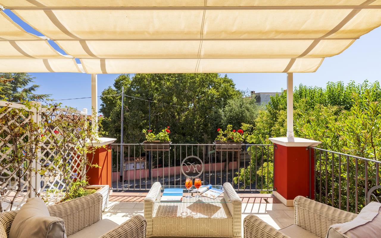 Amplia cama matrimonial y una cómoda cama para una tercera persona, un práctico mirador amueblado... ¡así te sentirás aún más cómodo! La Habitación Triple con terraza será la solución ideal para tu estancia en Santa Maria Navarrese.